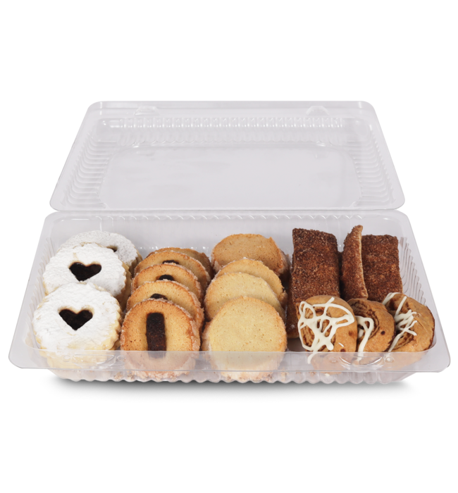 Galleta de mantequilla con mermelada de zarzamora y azúcar glass, barra de canela, diamánte de mantequilla natural, diamánte de mantequilla con un toque de chocolate Carlos V y galleta rol de canela.